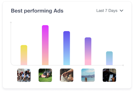 See how your ads are performing, select winning images and headlines, and help your team create more top-converting variations.